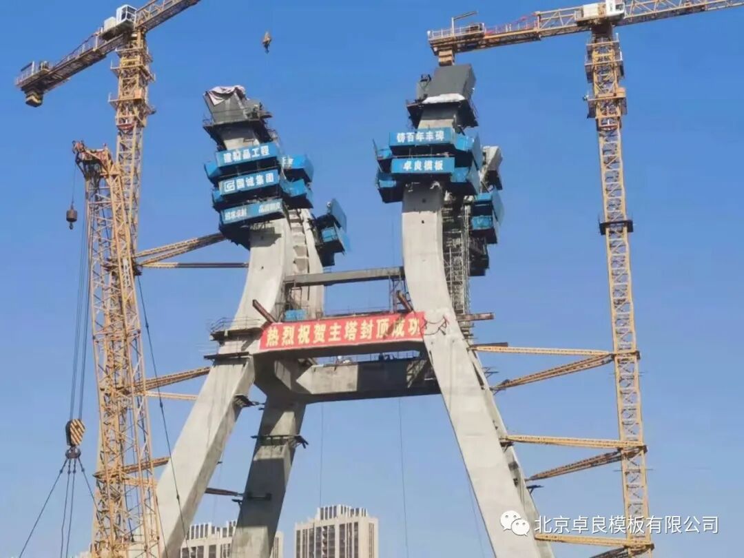 穰城路跨湍河大桥主塔顺利封顶,为卓良桥梁业绩锦上添花。
