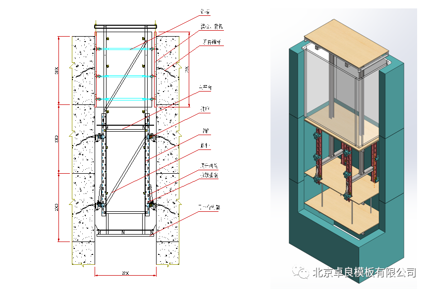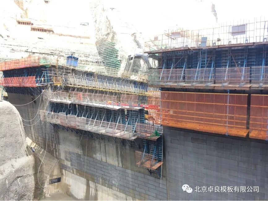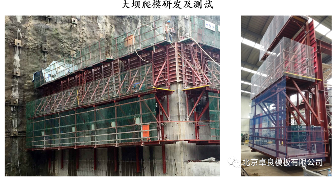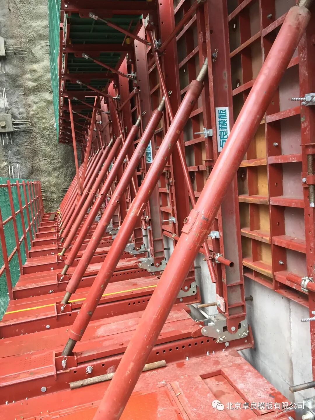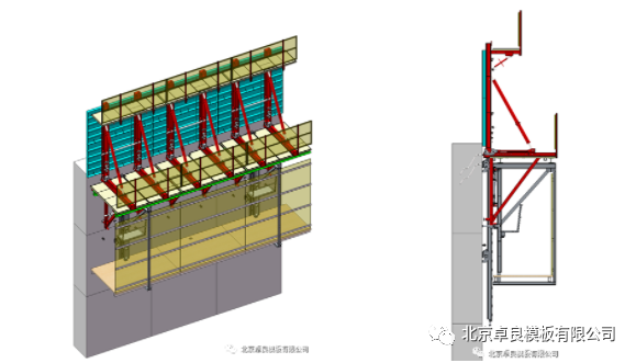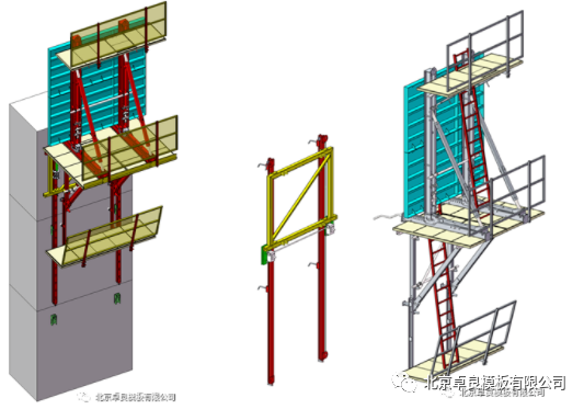 3、自爬升悬臂模板:以更经济的方式,实现单套悬臂模板自爬升,悬臂模板也可独立运用。特点1.爬升系统经济简单2.爬升系统与悬臂模板为组合式3.可电动爬升,也可手动爬升4.爬升机构具自锁功能5.爬点同步6.产品通用
